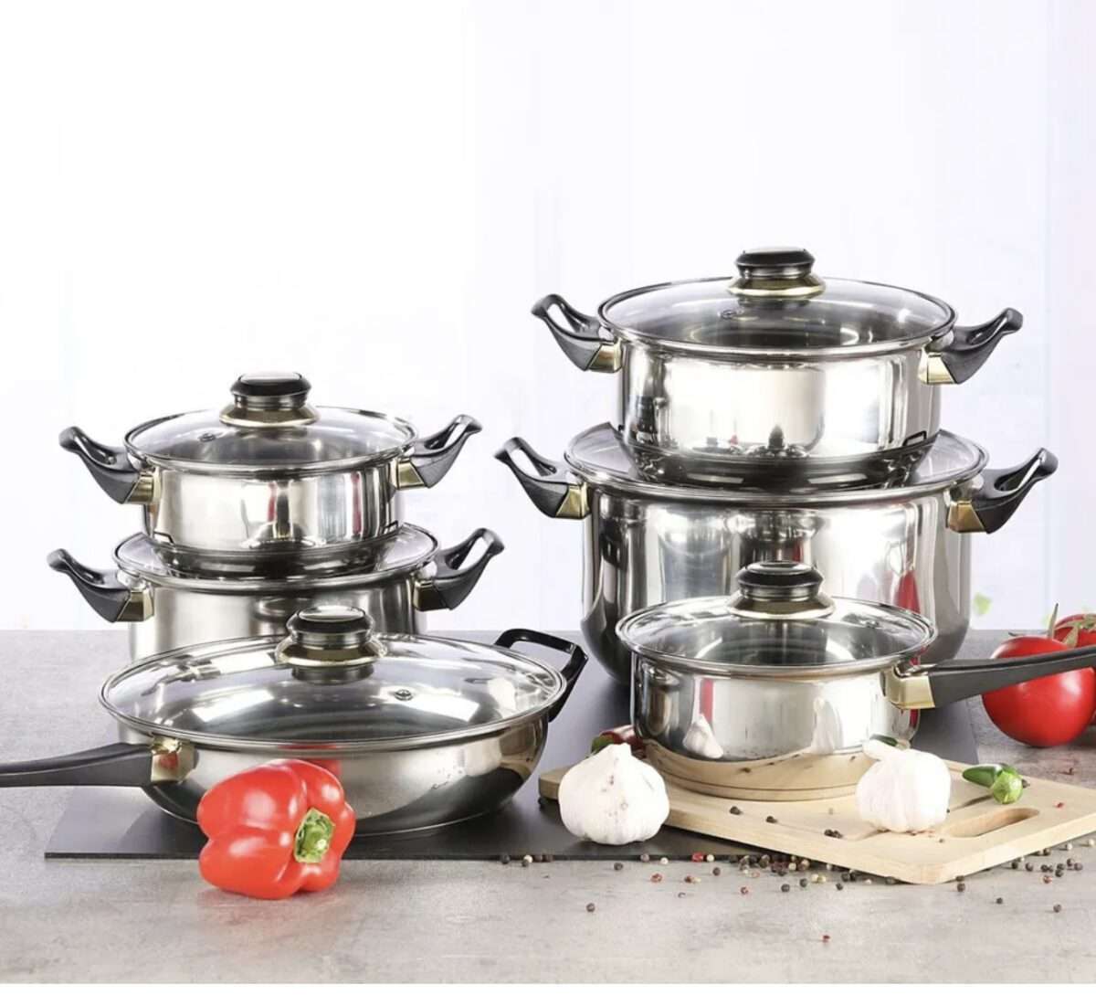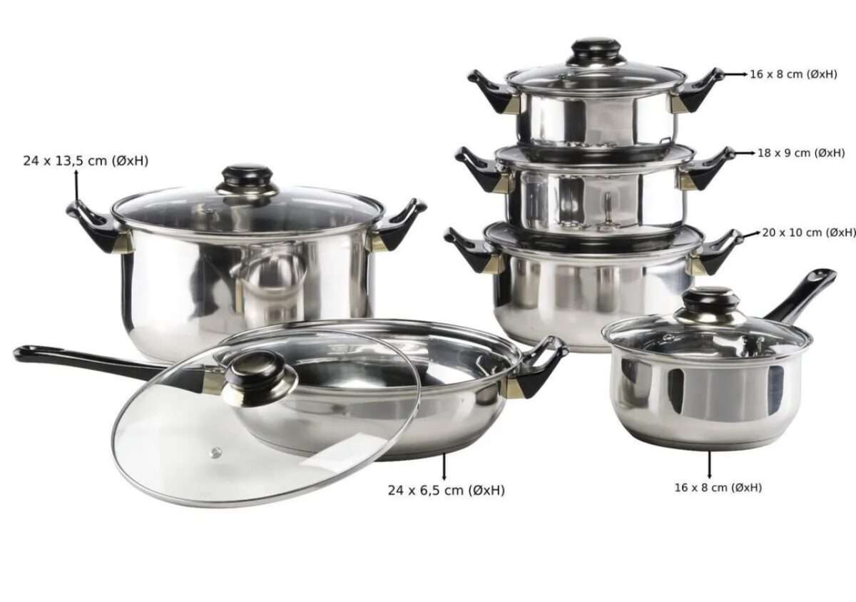 12 tlg. Edelstahl Topfset Töpfe Topf Kochtopfset Kochtopf Pfanne Deckel Set