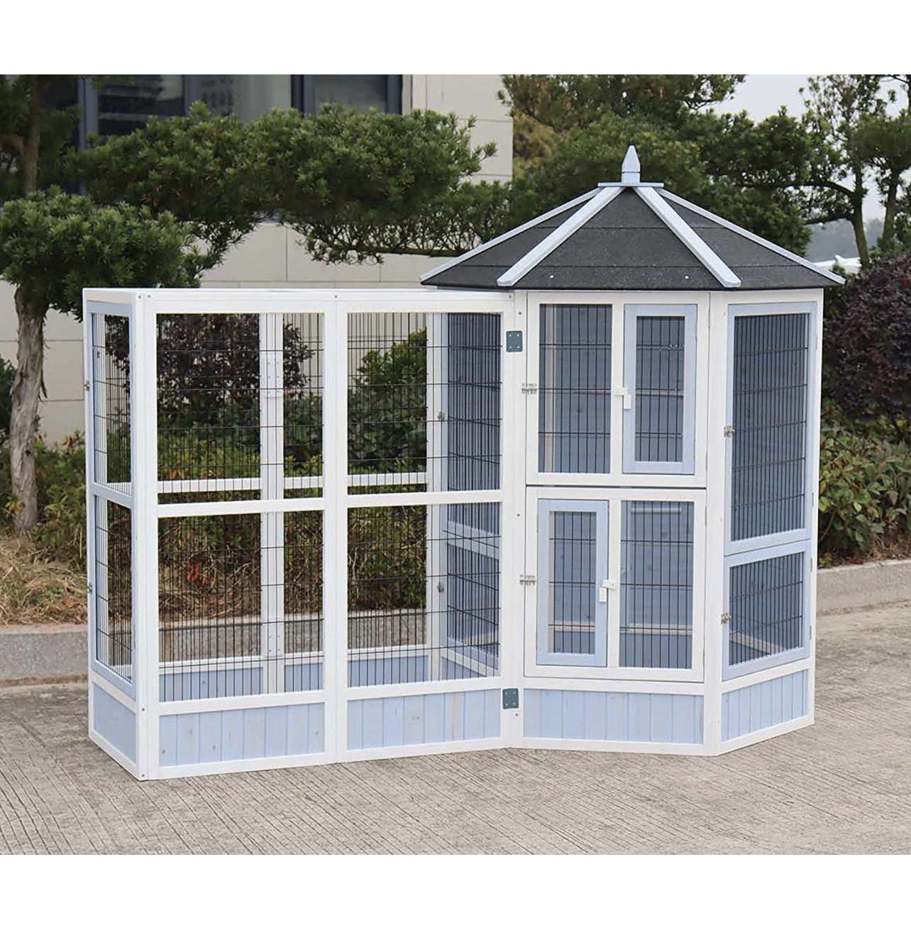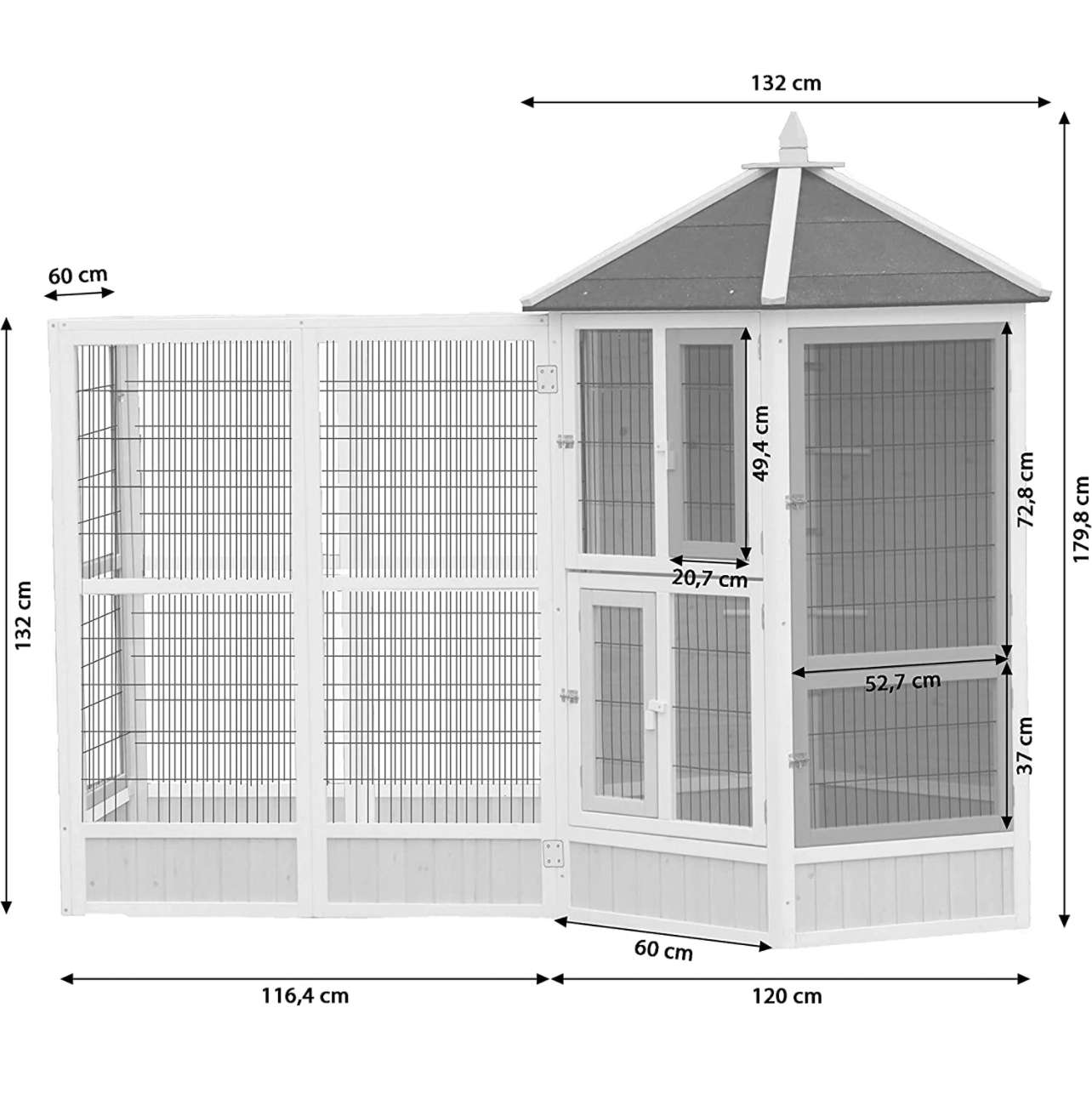 Dehner Vogelvolieren-Set Santorini, mit Freigehege, 132 x 236,4 x 180 cm,