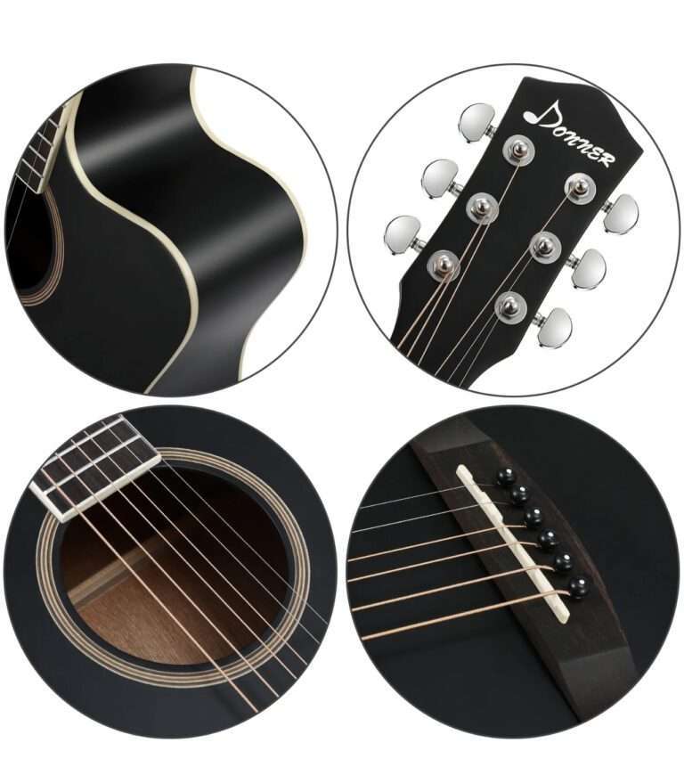 Donner-HandwerkDonner hält immer hohe Anforderungen an die Herstellung von Musikinstrumenten und unsere Idee ist es, Musikliebhabern hochwertige Dienstleistungen und Produkte aus einer Hand anzubieten. Gestützt auf seine starke und effiziente Forschung & Entwicklerteams ist Donner entschlossen, weiterhin innovative und exzellente Instrumente zu entwickeln, die die hohe Qualität beibehalten, die professionelle Künstler und Schöpfer inspiriert, und dennoch für jeden zugänglich genug sind, um sie zu spielen. Eine High-End-Akustikgitarre muss den Standard von präziser und perfekter Verarbeitung, süßem Klang, angenehmem Griff und dauerhafter Stabilität erreichen. Um diese Standards zu erreichen, bedarf es wirklich großer Anstrengungen. Alle Donner-Produkte sind auf Langlebigkeit ausgelegt.
