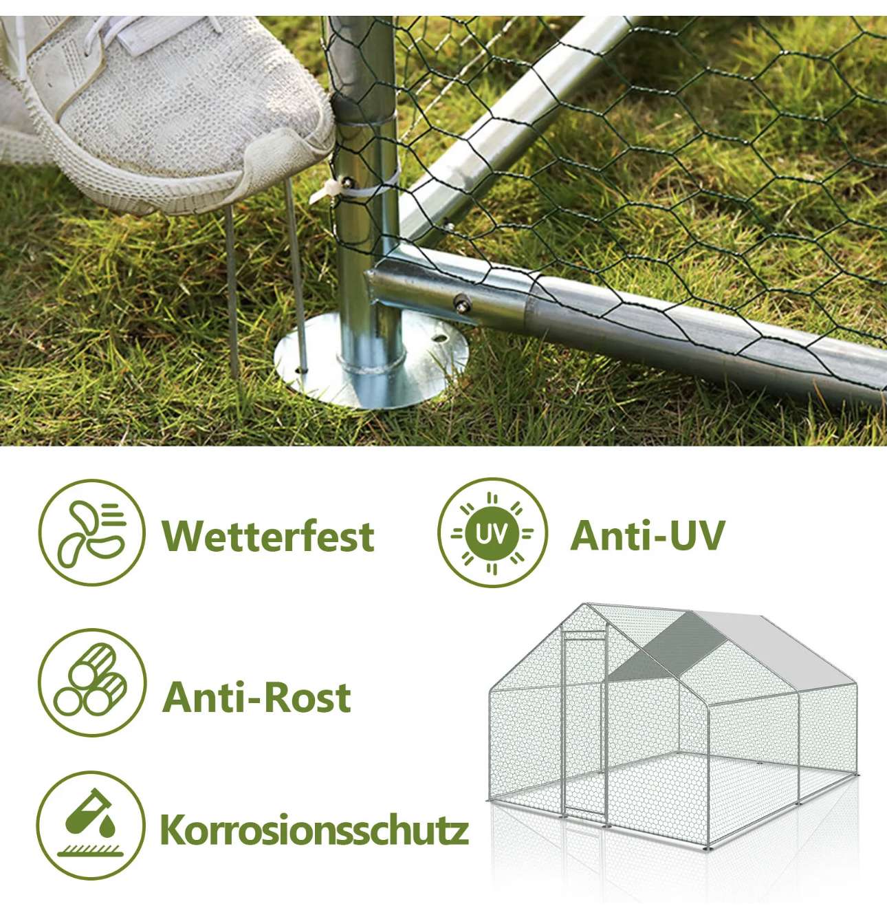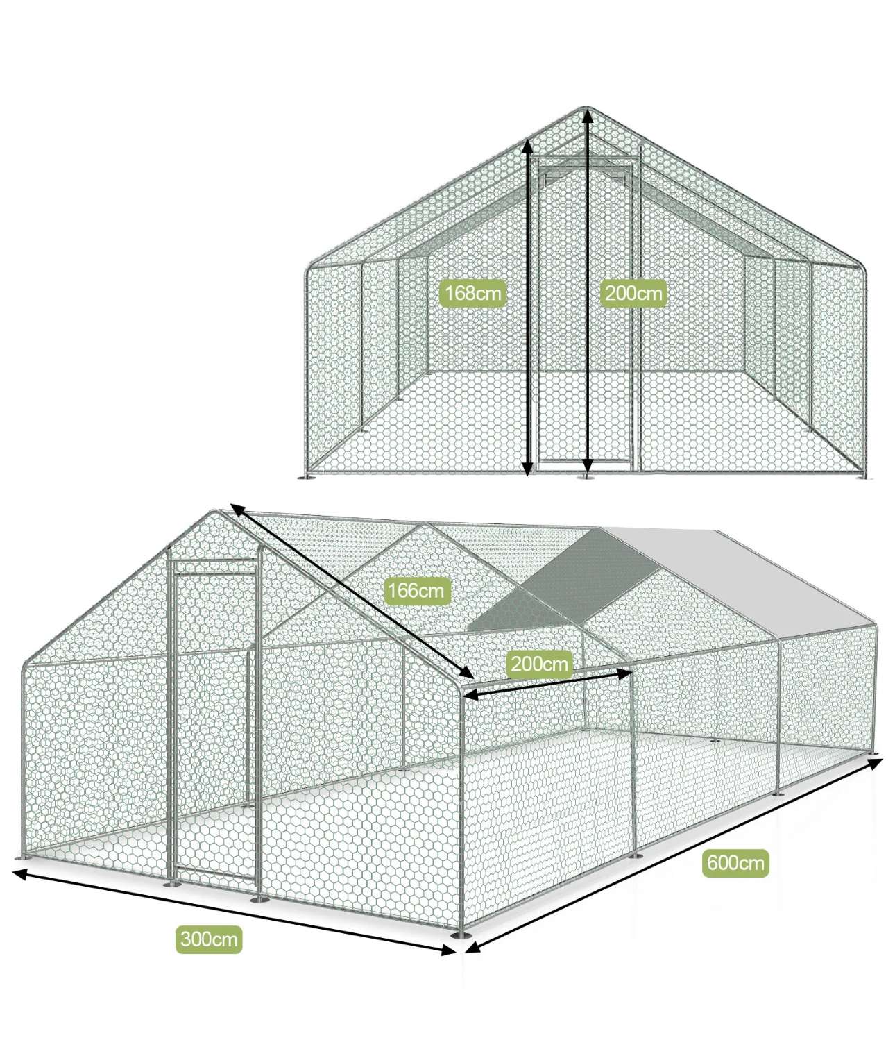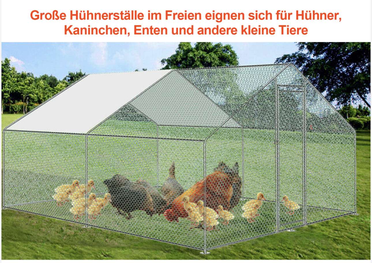 Langlebige Stahlkonstruktion: Hühnerstall Hergestellt aus hochwertigem Stahlrahmen, Abmessungen: /3 x 6x 2 m (B x T x H), für Geflügel, um freien Raum im Inneren zu haben und einfach zu installieren oder zu demontieren und einfach zu bedienen ist.