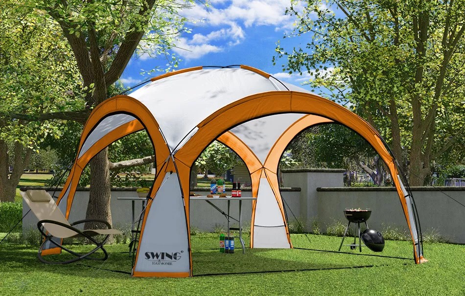 Durch das leichte und zudem sehr Robuste Fiberglas-Gestänge eignet sich der Pavillon sowohl für die spontane Party im eigenen Garten als auch für eine längere Nutzung auf dem Zeltplatz, als Schattenspender über dem Sandkasten bzw. Planschbecken oder als ganzjährige Überdachung für den Whirlpool.