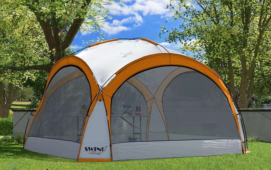 Der DomeShelter bietet dabei idealen Sonnen-, Regen und UV-Schutz. Die integrierte TwinTop Dachkonstruktion und die 360° Belüftung sorgen auch an heißen Tagen für ein angenehmes Klima unter dem Pavillon. Das robuste Überzelt wurde so konzipiert, dass Regenwasser einfach abperlt. Die Nähte sind zudem verschweißt und bieten so eine hohe Wasserfestigkeit.