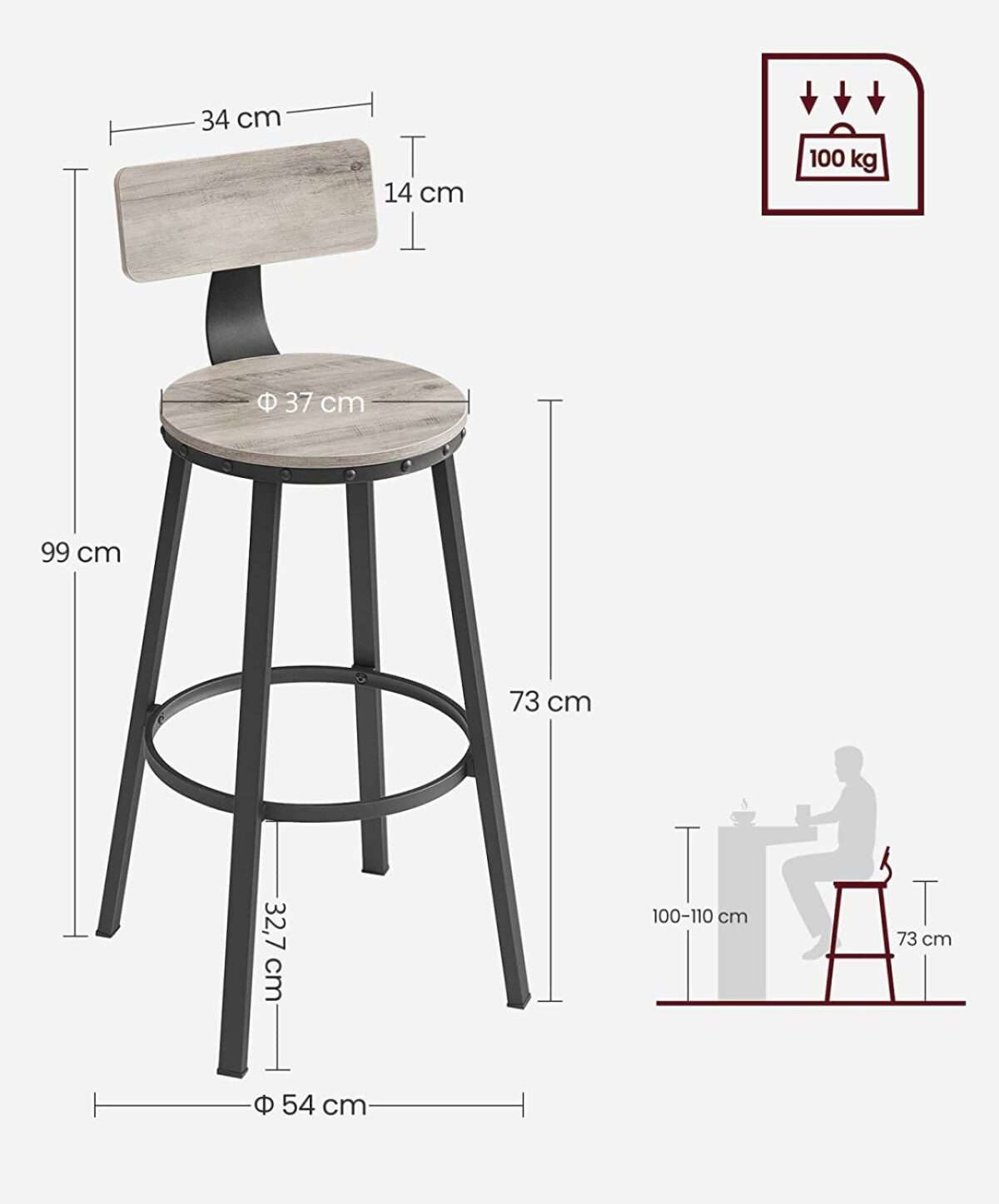 - Alles ist für Ihren Komfort ausgelegt: Geräumige Sitzfläche (Ø 37 cm), bequeme Rückenlehne und Fußstütze – Diese Barstühle bieten Ihnen hohen Komfort, den Sie für entspannte Momente an der Bar gebrauchen können!