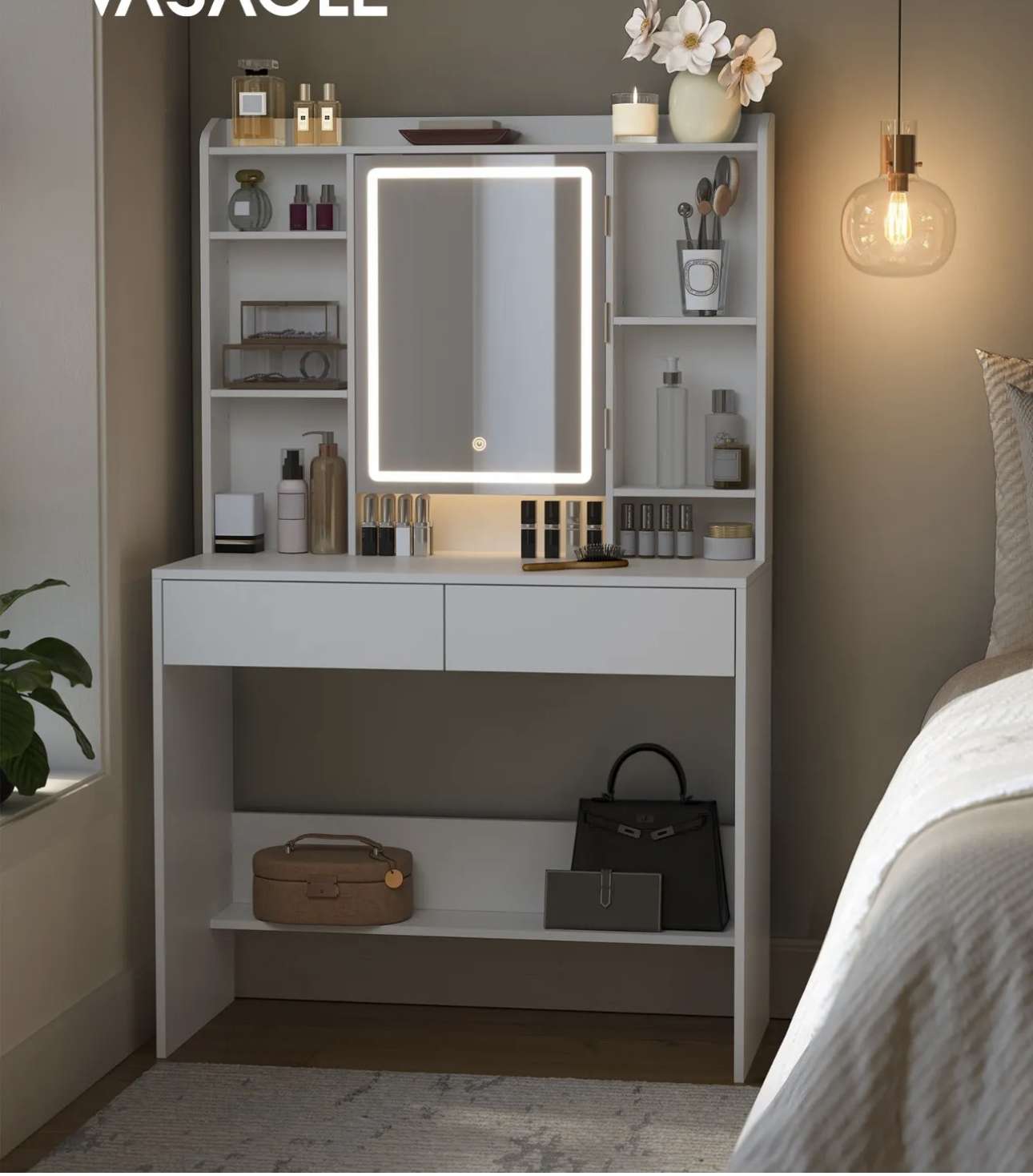 - [Schlicht und modern] Das schlichte Design, die klaren Linien und die reine weiße Farbe hauchen diesem modernen Frisiertisch Leben ein und verleihen Ihrem Schlafzimmer einen eleganten Touch
